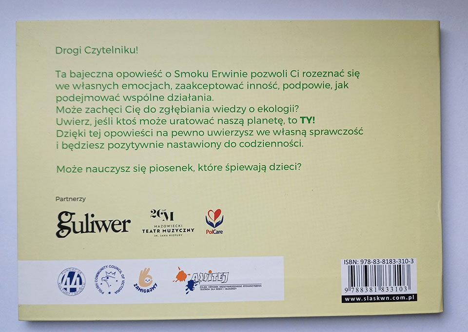 Ta bajeczna opowieść o Smoku Erwinie pozwoli Ci rozeznać się we własnych emocjach, zaakceptować inność, podpowie, jak podejmować wspólne działania.